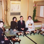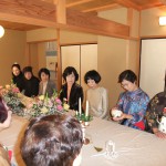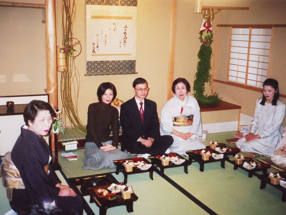 毎年1月最初のお稽古日に初釜を行います。年の初めを寿ぎ、また一年心をひとつにして学び、楽しむことを思いながら一碗の濃茶をいただきます。おいしいお食事や福引など茶室の中にひととき和やかな笑いが絶えません。